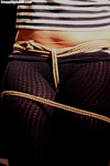 Blindfolded and gagballed brunette babe gets her first public anal fucking.