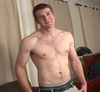 Hot dude in blue top and checkered shorts works long dick on couch to spray cum
