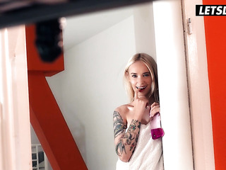 Blonde masseuse shows amazing tits while...